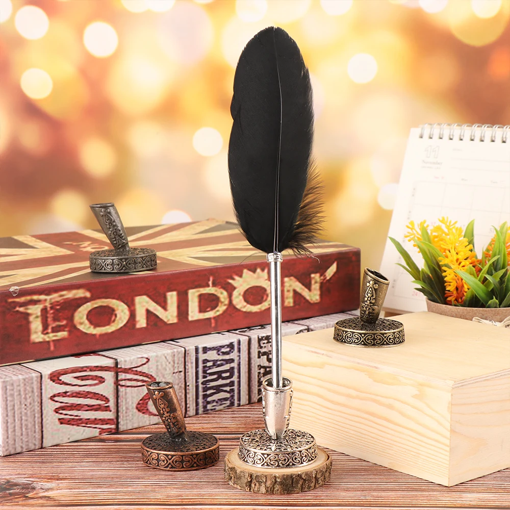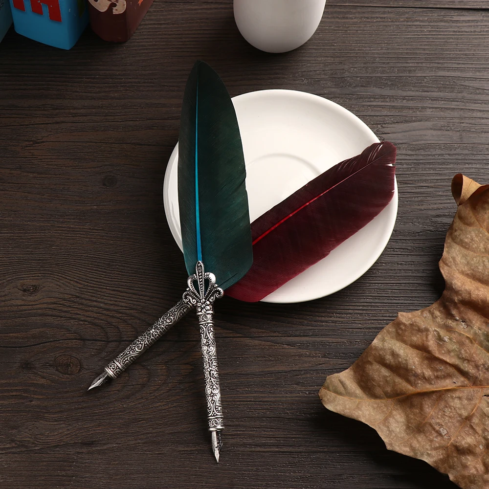 1 Набор 0,7 мм винтажные элегантные перьевые ручки, перо из натуральных перьев, перо с наклонным покрытием с 5 наконечниками, набор ручек в подарок, красный, черный, зеленый, фиолетовый