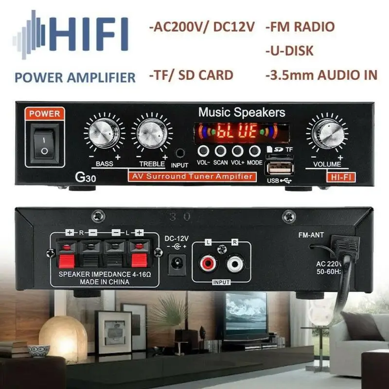 Перед покупкой: Этот усилитель подходит для семьи. Если он используется в домашних условиях, он поддерживает только Европейский/американский стандарт. Вам нужно преобразовать соответствующую вилку. Если он используется в автомобиле, он будет использоваться в автомобилях 12 В. Спасибо!