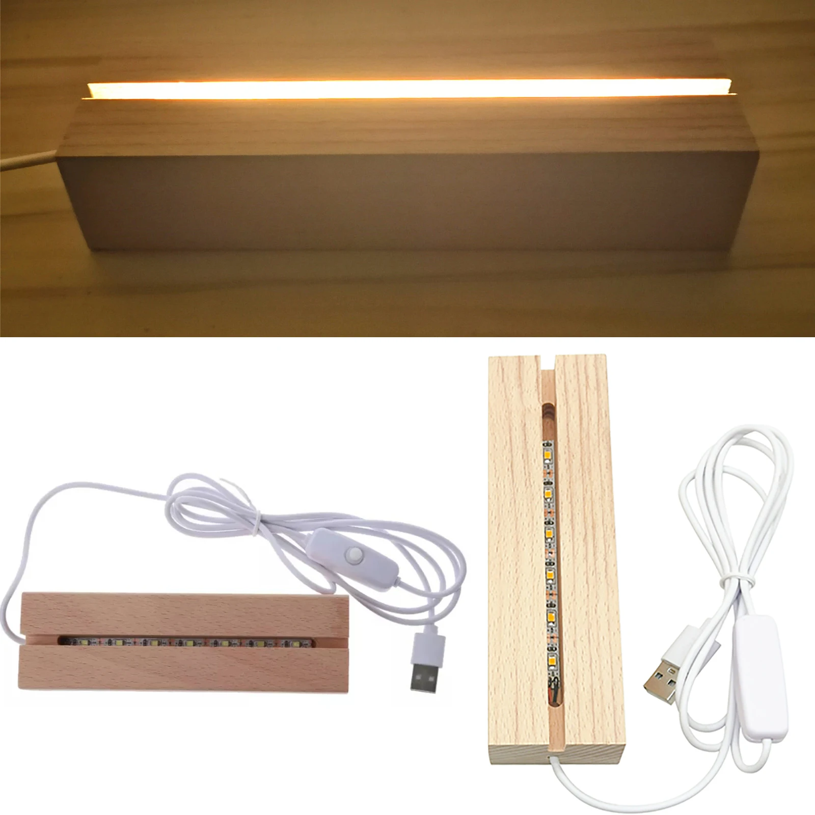 Деревянное основание для светодиодной лампы с USB-кабелем, ночник, 3D основа для светодиодной лампы, длинная акриловая основа для деревянной лампы сделай сам