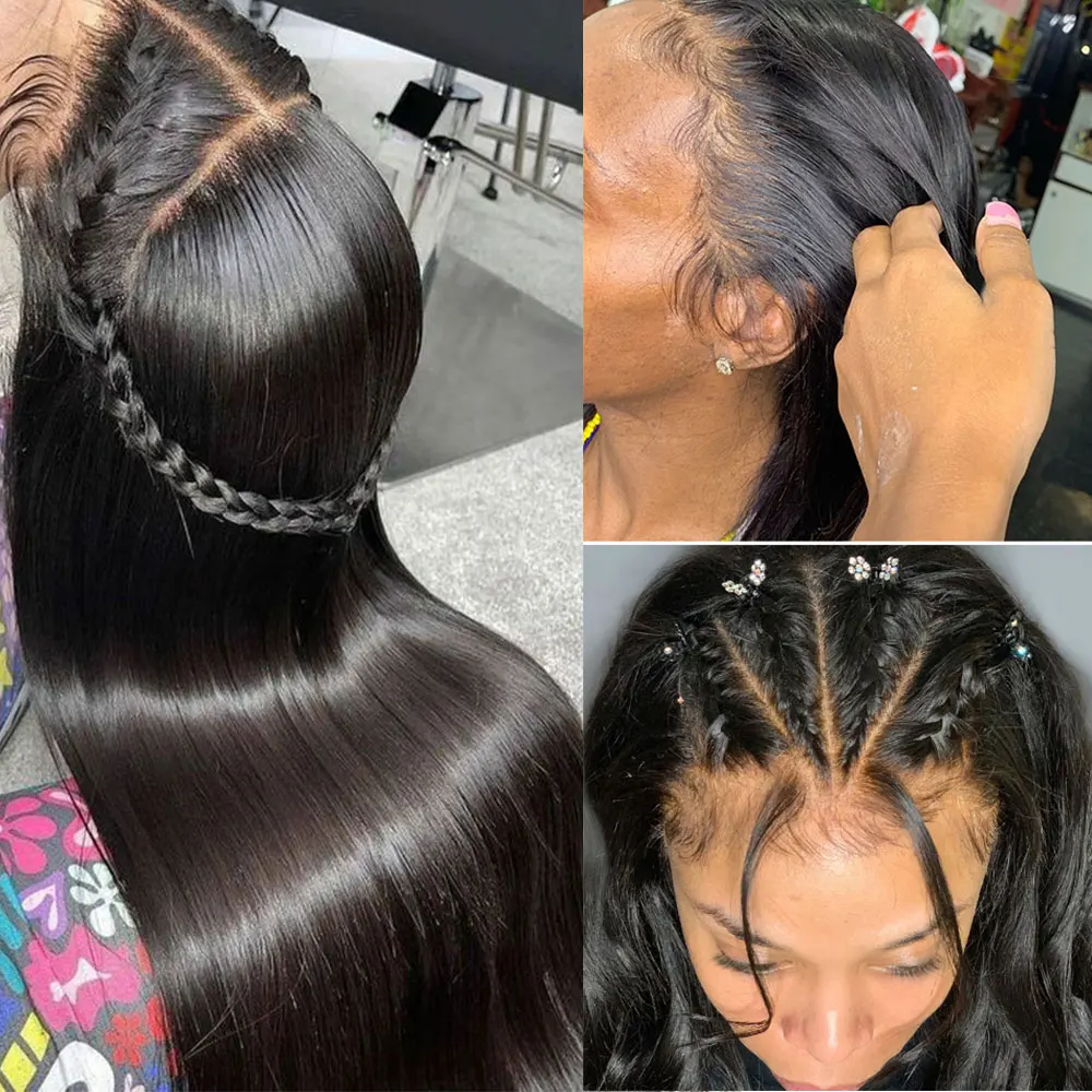 Парик HD прозрачный из натуральных человеческих волос, предварительный выщипываемый передний и передний парик из перуанских человеческих волос