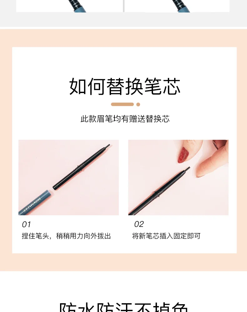 Карандаш для бровей Jacino Lanti fiber, тонкий сердечник, натуральная кисть, развивающая водонепроницаемая защита от пота для начинающих, сменная