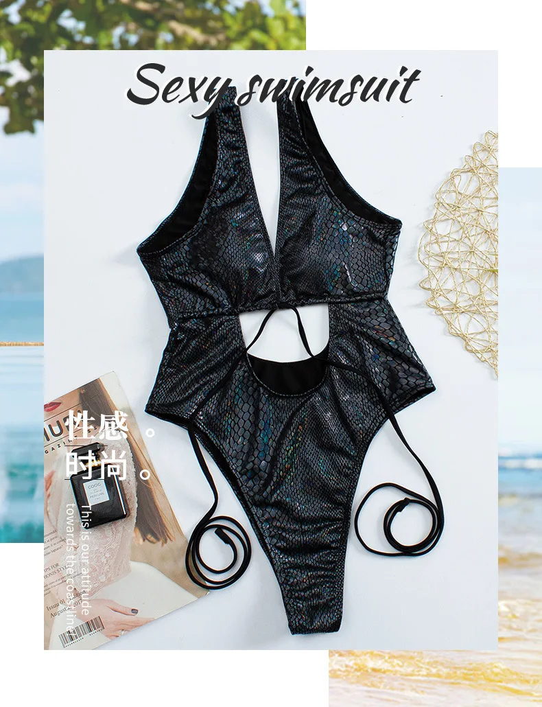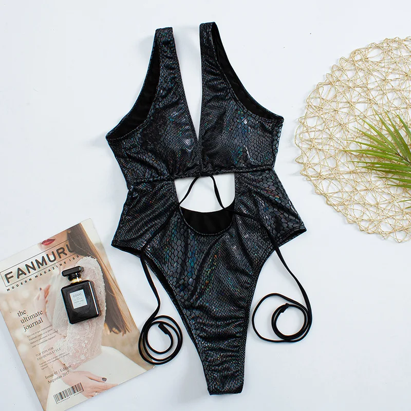 2022 сексуальный слитный купальник с вырезами, женский купальник из змеиной кожи, женская пляжная одежда, купальный костюм-бандо с открытой спиной, купальник