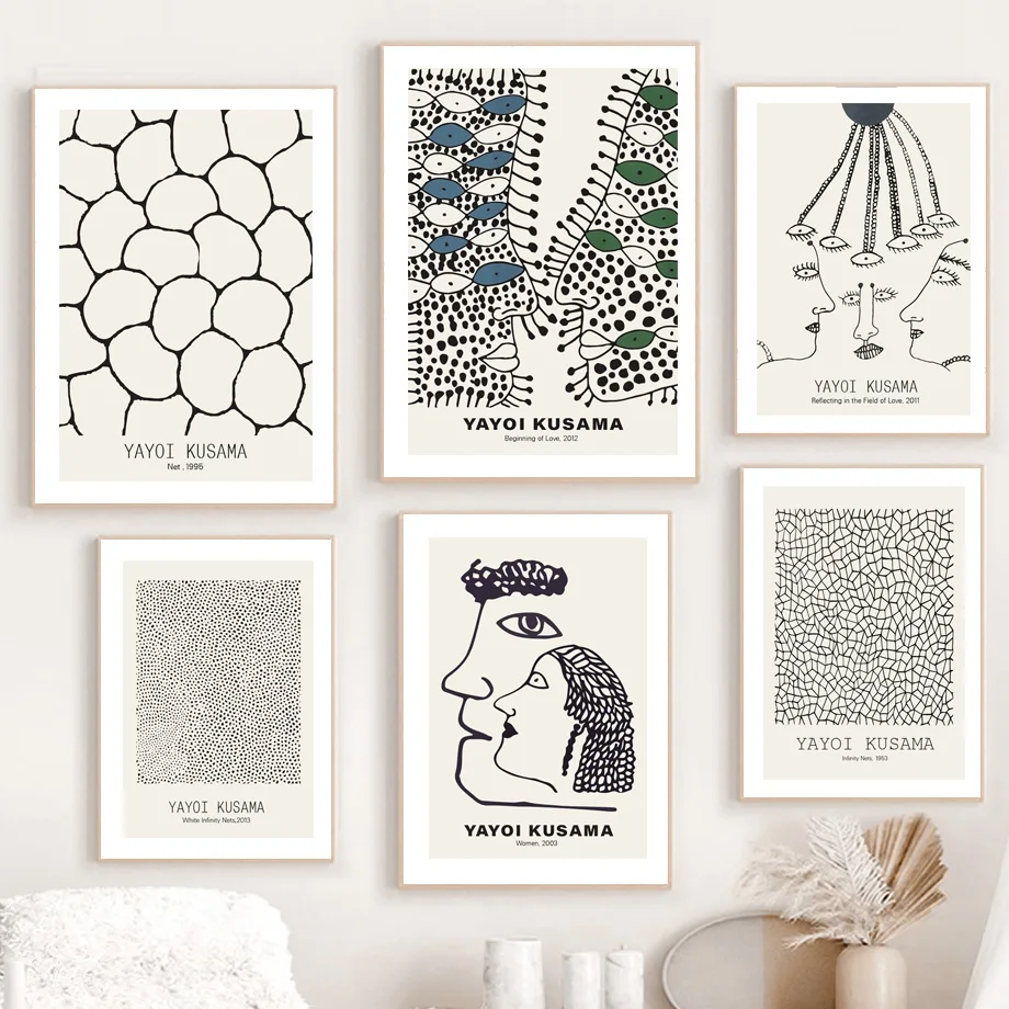 Yayoi Kusama, абстрактная картина в горошек, фотообои, холст, скандинавские постеры и принты, настенные картины для декора гостиной