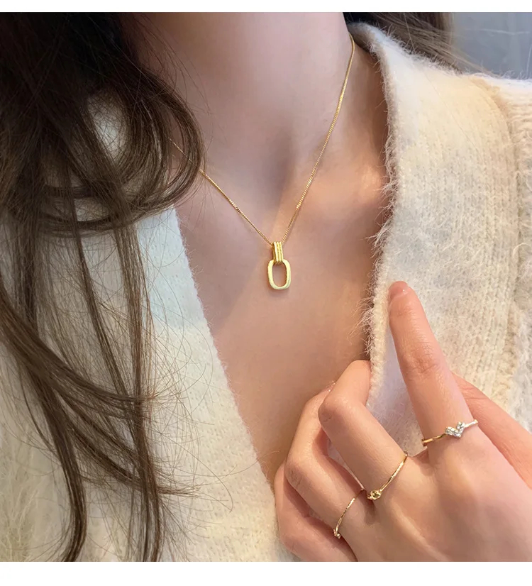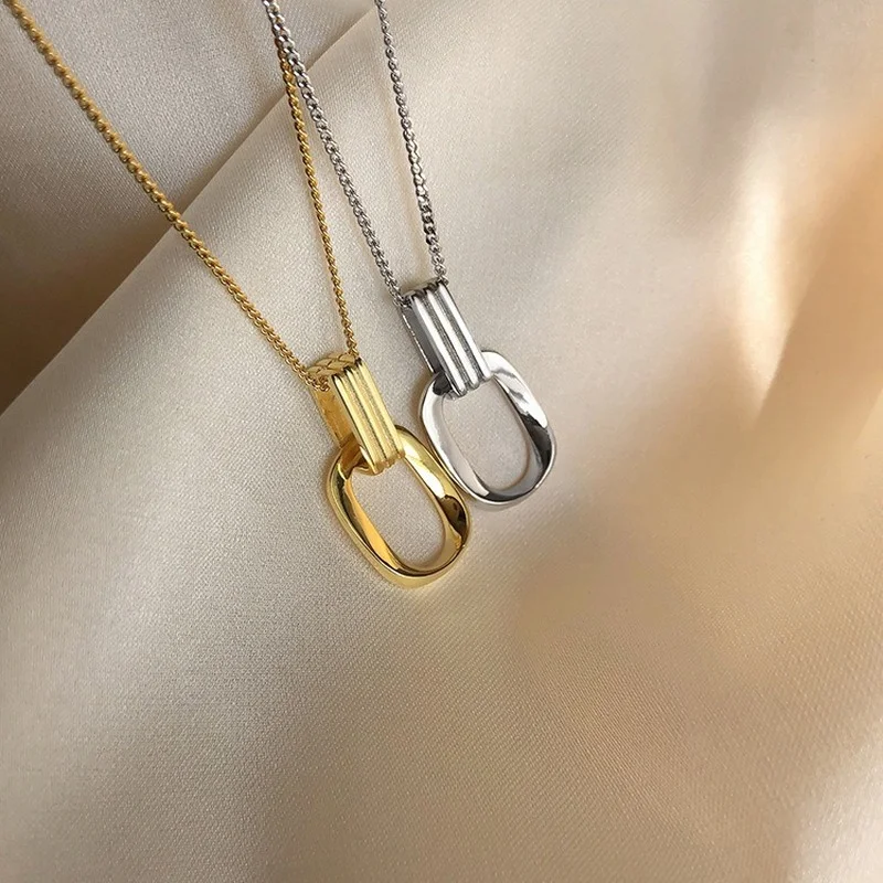 VOQ серебряный цвет геометрическое двойное кольцо ожерелье для женщин простой темперамент замок костной цепи аксессуары вечерние