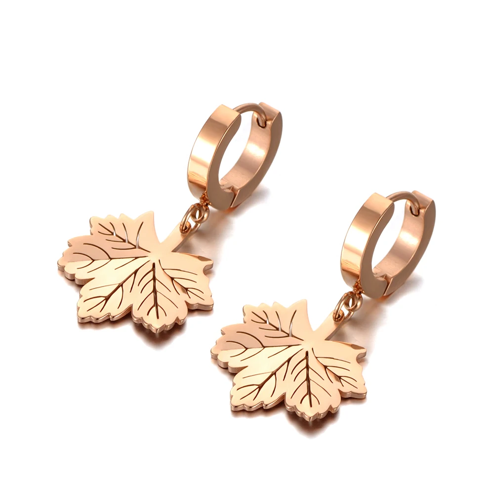 Модные серьги-кольца из нержавеющей стали и титана в виде кленового...