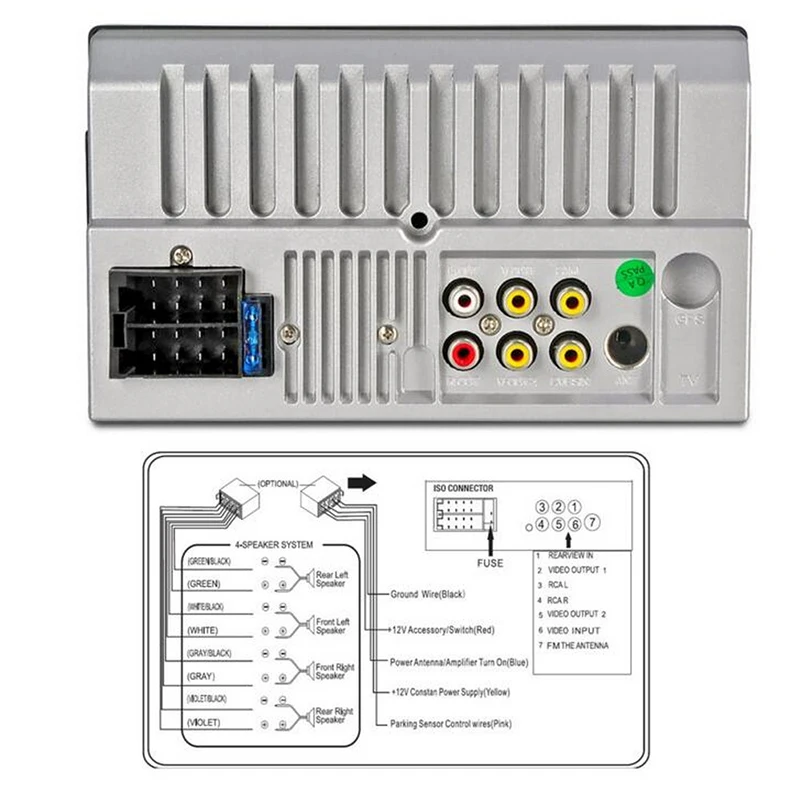 Остальные восемь проводов (серый, белый, зеленый, фиолетовый)-это акустическая линия, группа цветов, соответствующая паре линий динамиков (положительный и отрицательный).