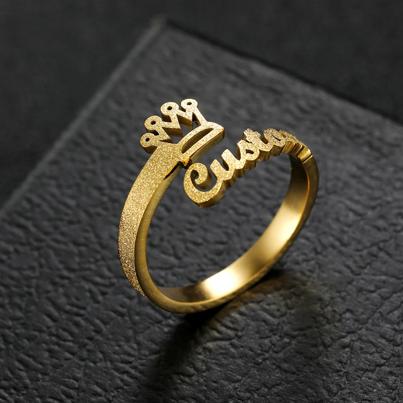 Индивидуальное двойное кольцо с именем из нержавеющей стали Регулир...