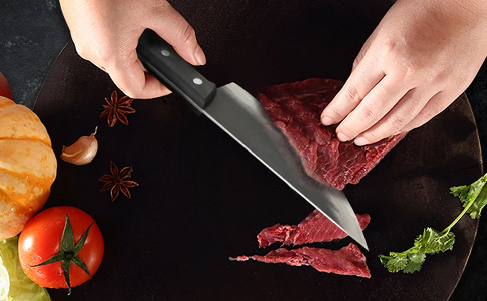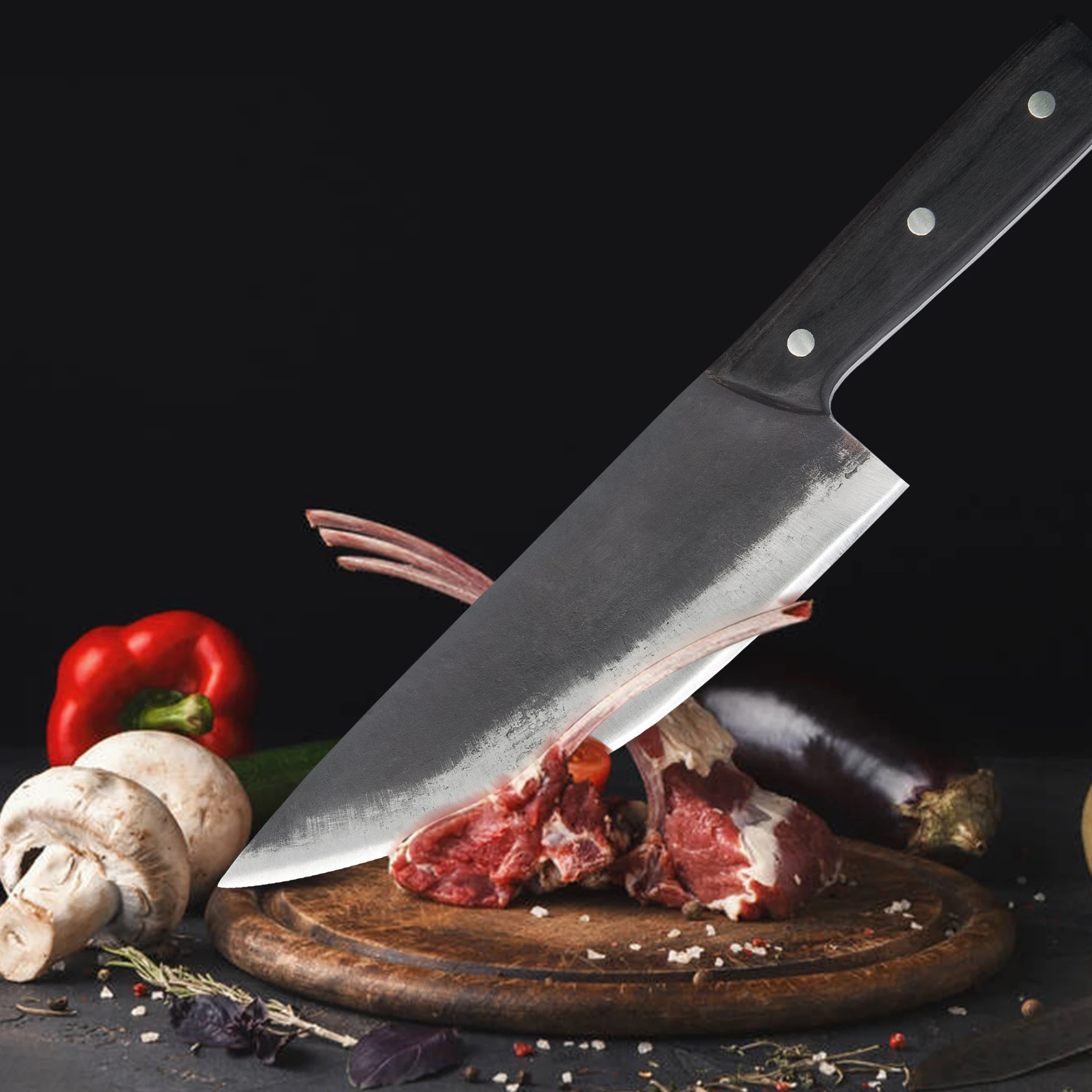 Кованый нож шеф-повара из нержавеющей стали, 8 дюймов, кухонный нож, столовые приборы, мясной нож, овощной нож, инструмент ручной работы, японский нож в футляре