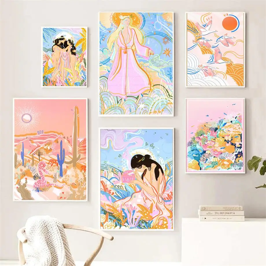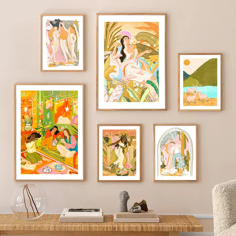 Абстрактные Фигурки девушек, скандинавские плакаты и принты на тело...