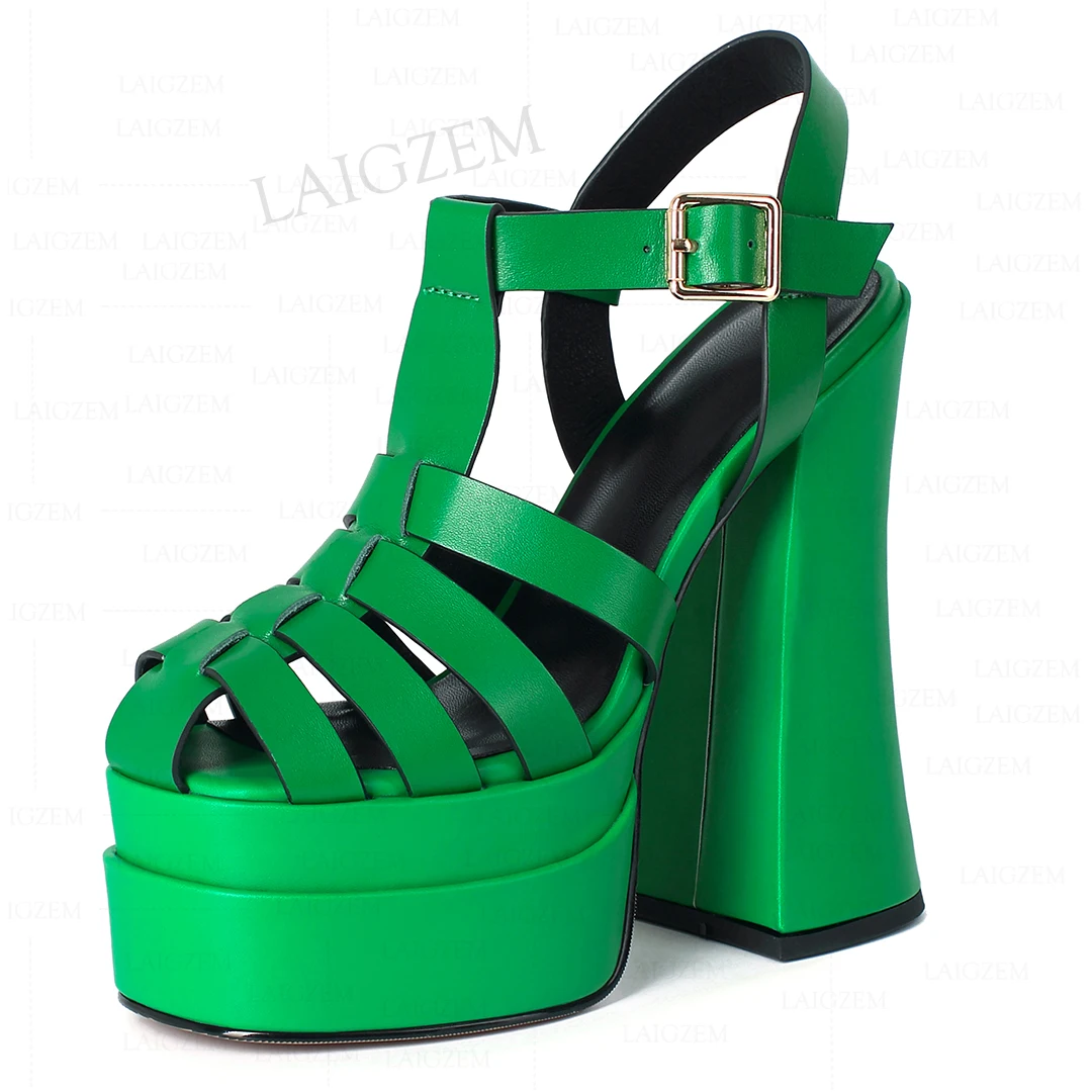 LAIGZEM/женские босоножки; Туфли-лодочки из натуральной кожи на высоком квадратном каблуке 15 см; Женская обувь ручной работы, увеличивающая рост; Коллекция 2022 года; Женская обувь; Размеры 33, 38, 39