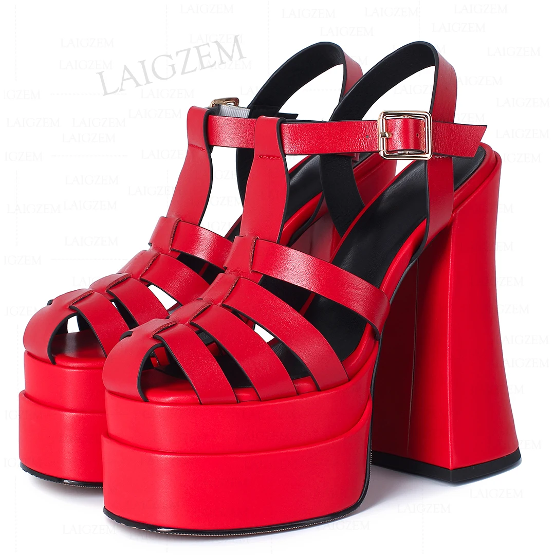 LAIGZEM женские сандалии на платформе; Босоножки из натуральной кож...