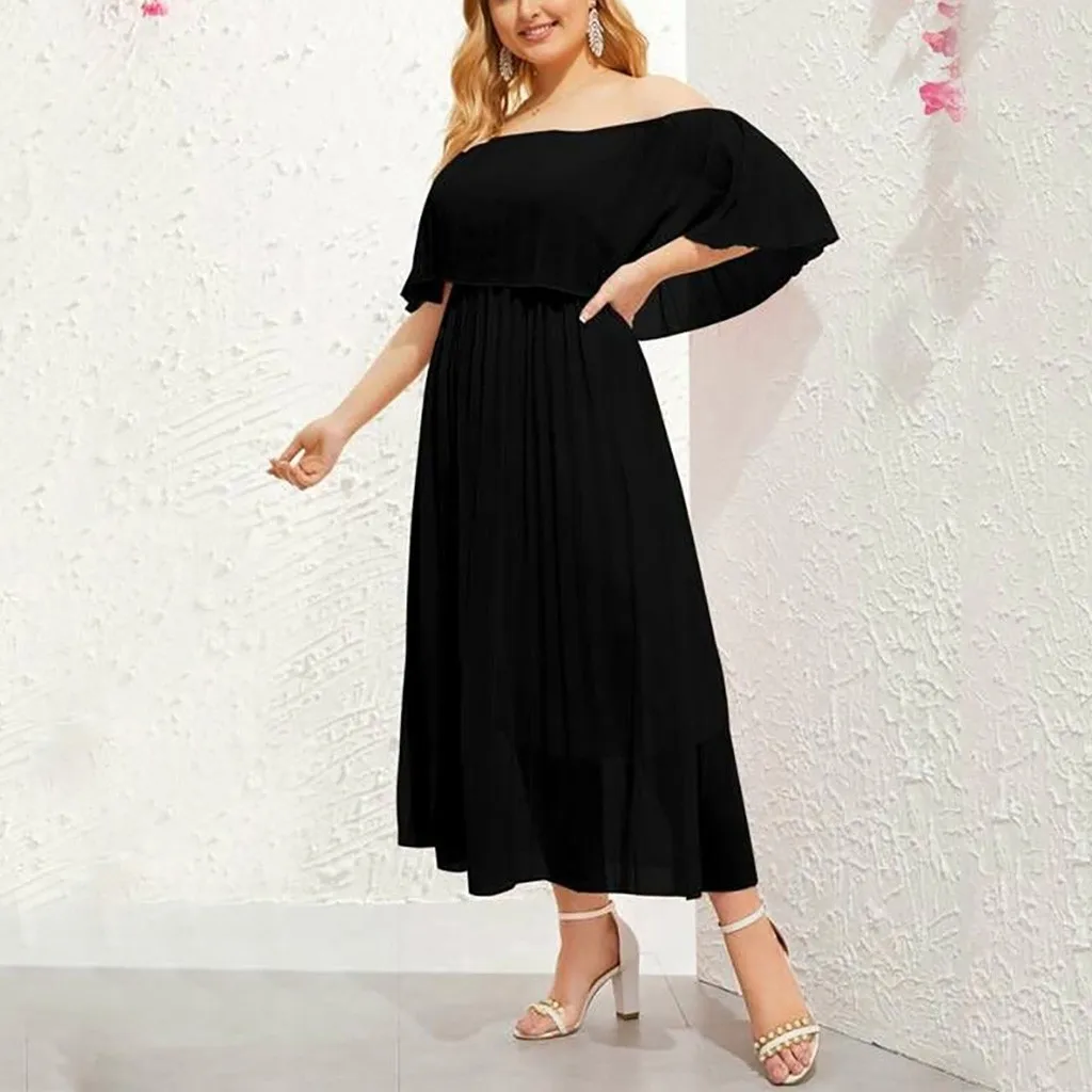 Женское платье макси с открытыми плечами, с многослойными оборками, вечерние, повседневные, большие размеры