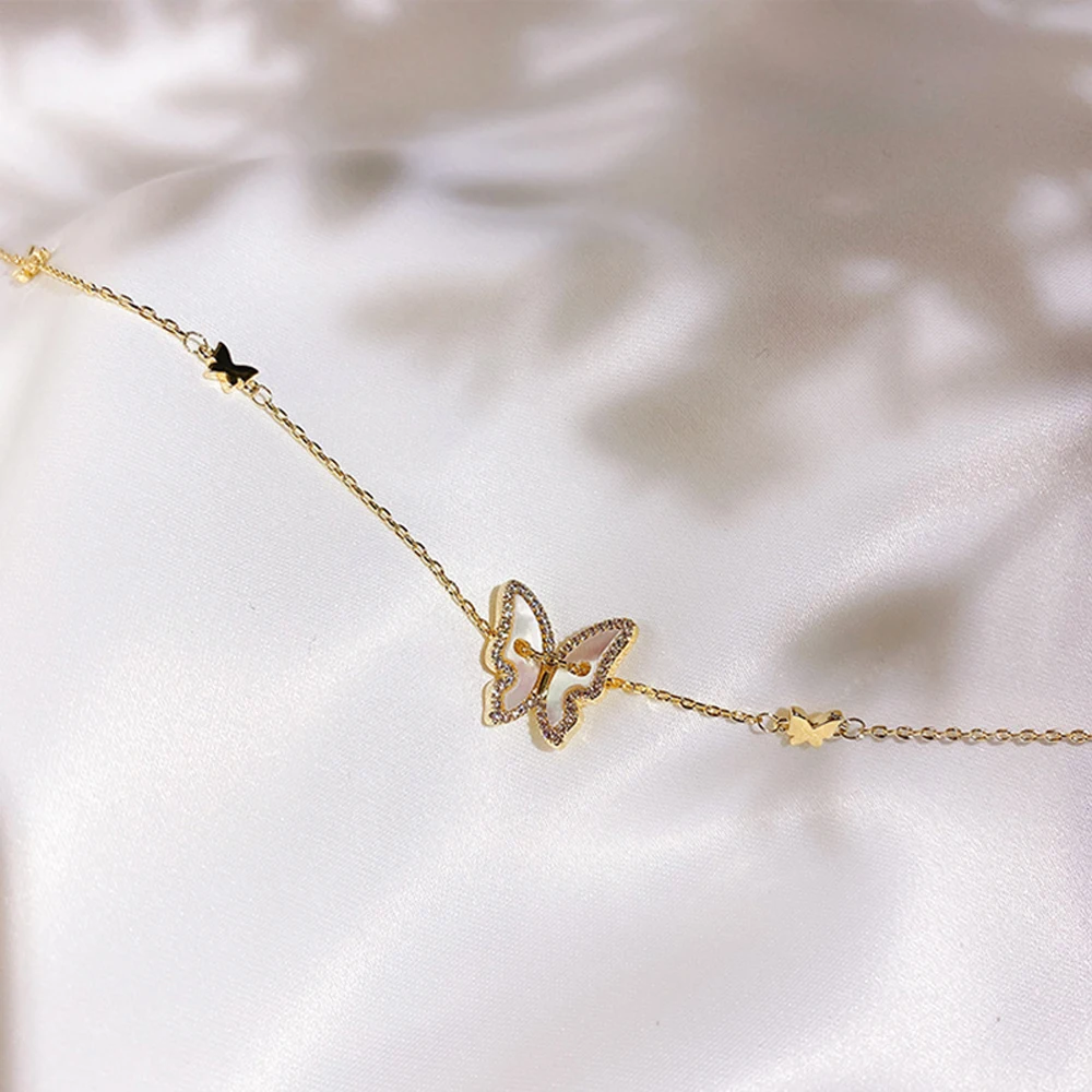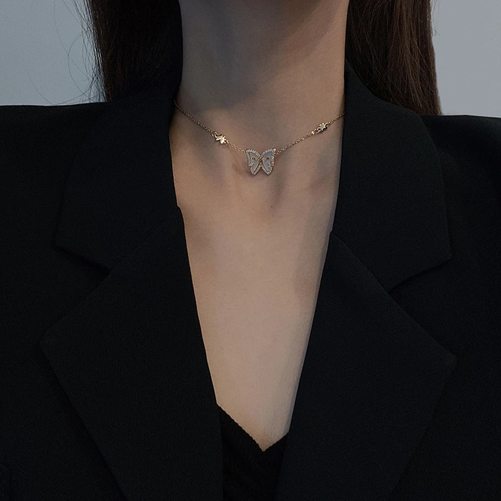 НОВЫЕ геометрические элегантные Стразы для девушек, Женский чокер до ключиц с кристаллами, ожерелье с бабочкой, ракушка