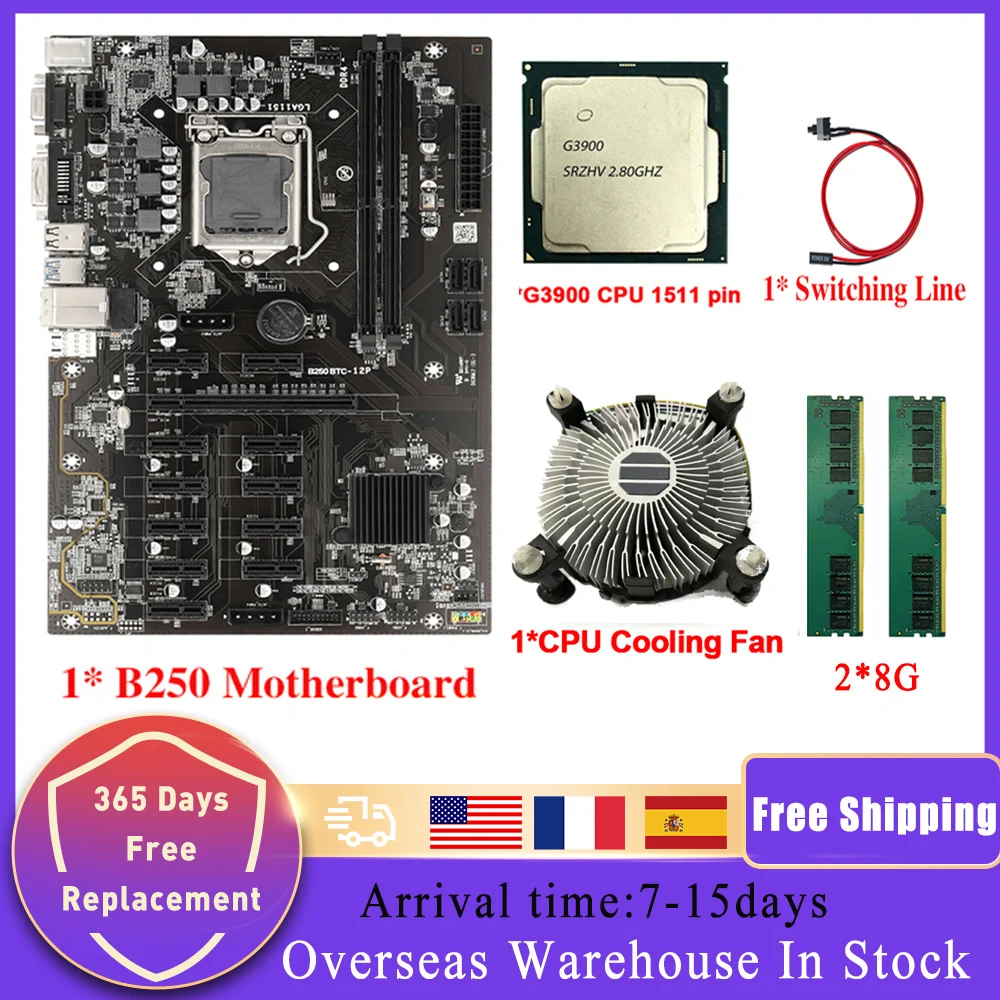 Набор материнской платы B250 BTC для майнинга LGA1151 с ЦПУ G3900 12 USB3.0 до PCIE слот GPU 816 ГБ 2133 МГц DDR4 ОЗУ для майнинга