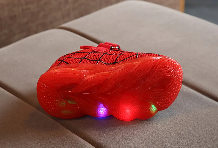 Детские светильник кие кроссовки Disney, сетчатые дышащие, светящиеся сандалии для мальчиков и девочек, Человек-паук