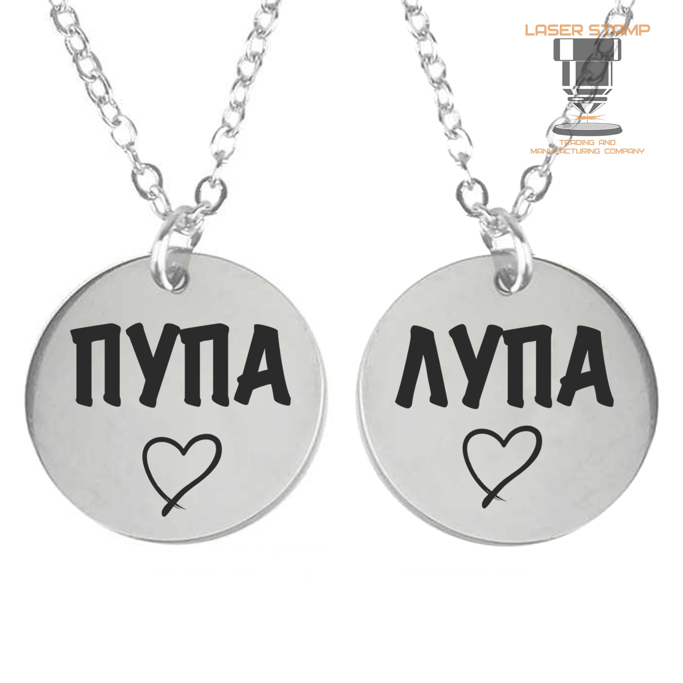 Парные кулоны Пупа и Лупа с цепочками. Нержавеющая ювелирная сталь. pupa_lupa_kulon
