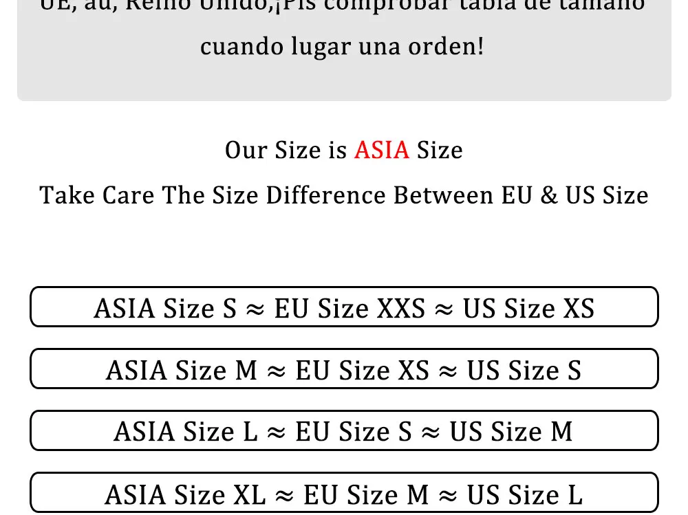Size specificationsAsian size