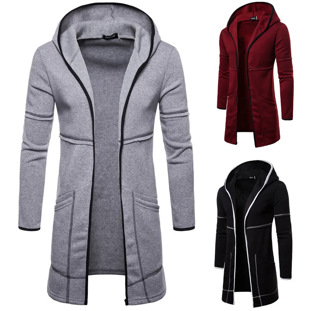 Модный Кардиган с длинным рукавом, верхняя одежда, блузка, длинное пальто для осени и зимы, мужской однотонный Тренч с капюшоном, куртка