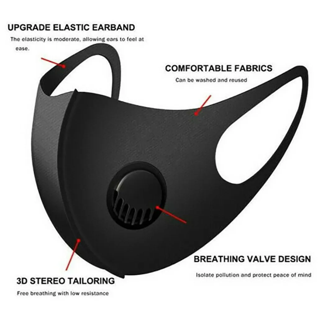 Дышащая черная маска с клапанами, моющаяся многоразовая маска для в...