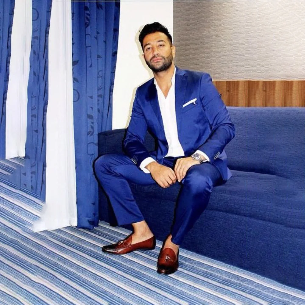 Мужские облегающие костюмы, черные костюмы Королевского синего цвет...