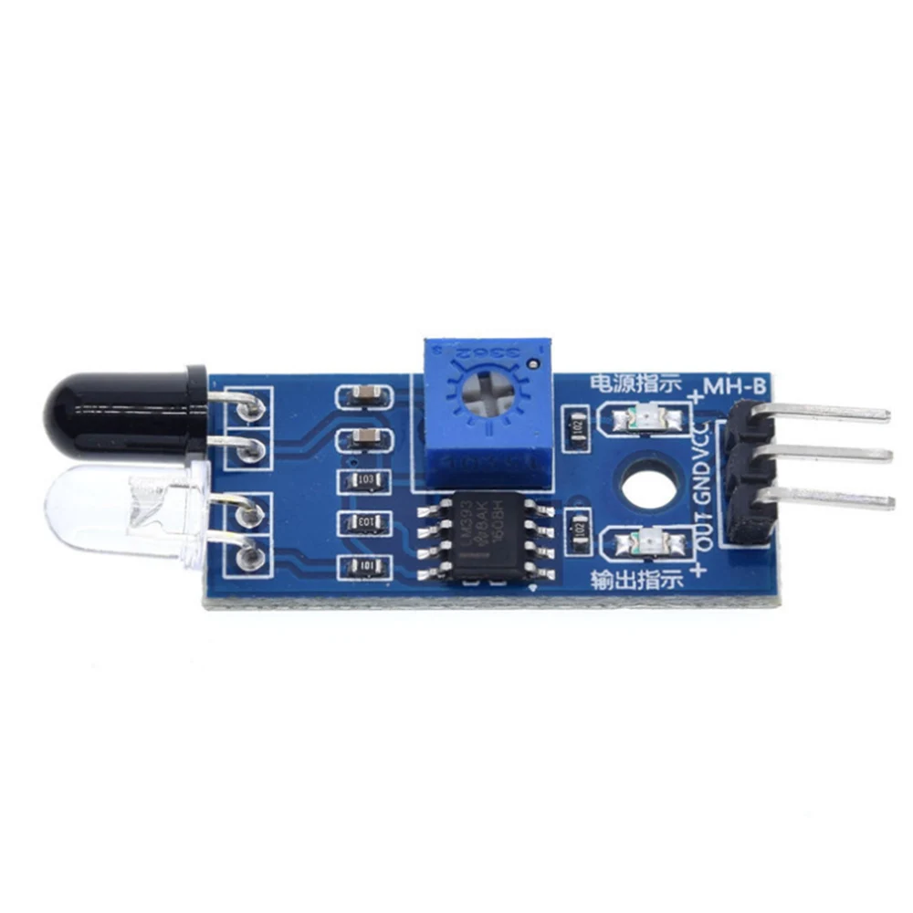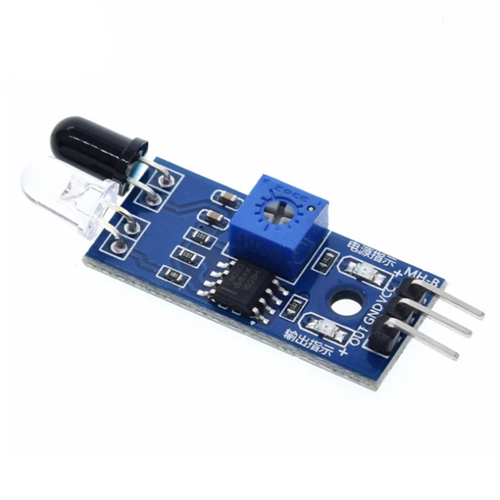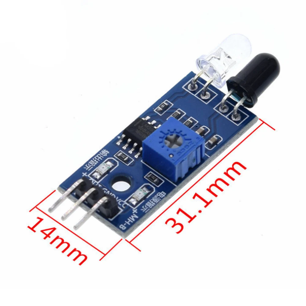 Модуль датчика на светильник хорошо адаптируется к окружающей среде, имеет пару инфракрасных передатчиков и приемников, передатчик запускает определенную частоту инфракрасного излучения, когда встречает препятствия в направлении обнаружения, инфракрасный приемник отражается обратно трубка приемника, после обработки через схему компаратора, Зеленый светильник индикатора будет освещаться, в то время как выходной интерфейс сигнала выходной цифровой сигнал (сигнал низкого уровня) может быть отрегулирован через расстояние обнаружения ручки потенциометра, эффективное расстояние 2 ~ 30 см, рабочее напряжение 3,3 V-5V. Диапазон обнаружения датчика может быть отрегулирован потенциометром, с небольшим количеством помех, легко собирается, простота в использовании, может быть широко использован робот Предотвращение препятствий, линия по сборке автомобилей для избегания препятствий, отслеживание черно-белой линии и много других случаев.
