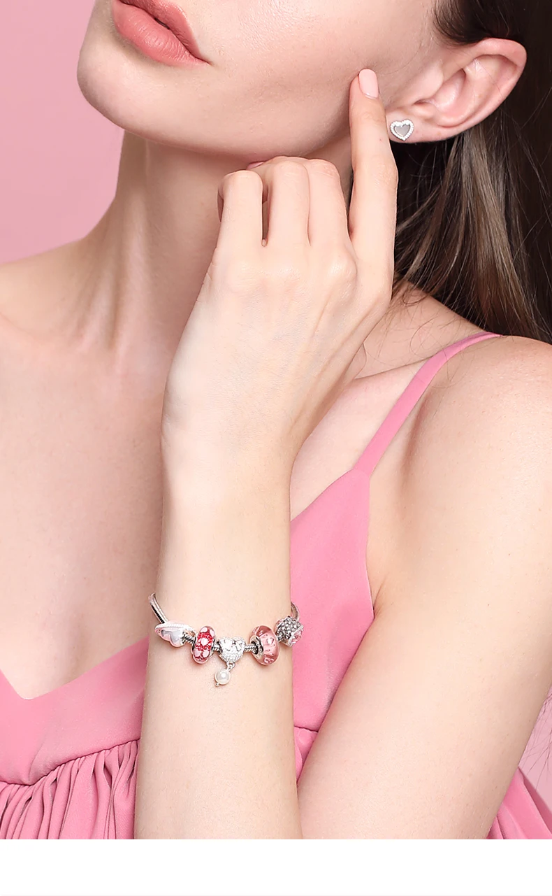 Модные женские браслеты с серебряным покрытием, застежка в форме сердца, цепочка-змея, базовые шармы, браслет из бисера, сделай сам, ювелирные изделия, подарок