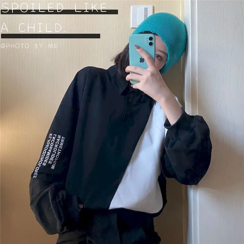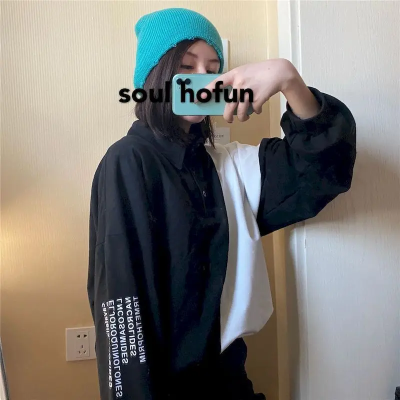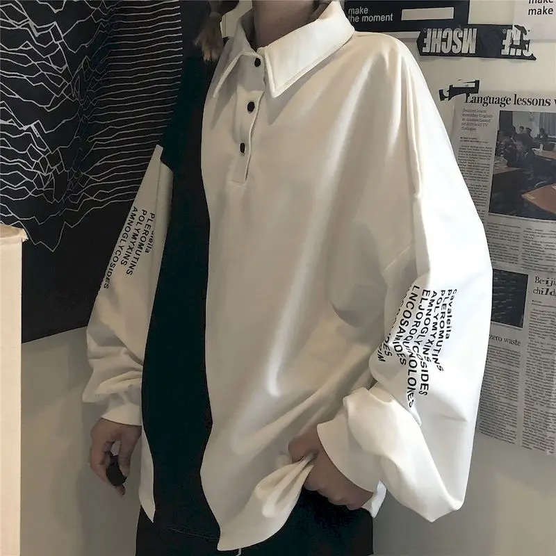 Рубашка-поло в стиле пэчворк для мужчин и женщин, Повседневная футболка с длинным рукавом, оверсайз, рубашка-поло с длинными рукавами, в стиле Харадзюку, белого и черного цвета, весна-осень