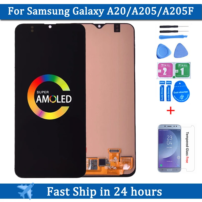 Супер AMOLED для Samsung Galaxy A20 A205 SM-A205F A205FN ЖК-дисплей с сенсорным экраном дигитайзер в сборе Бесплатная доставка
