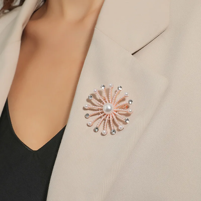 Корейский Золотой милый жемчуг броши Снежинка Женская булавка с блестками с лацканами для рубашки платья Ювелирные изделия Аксессуары для одежды