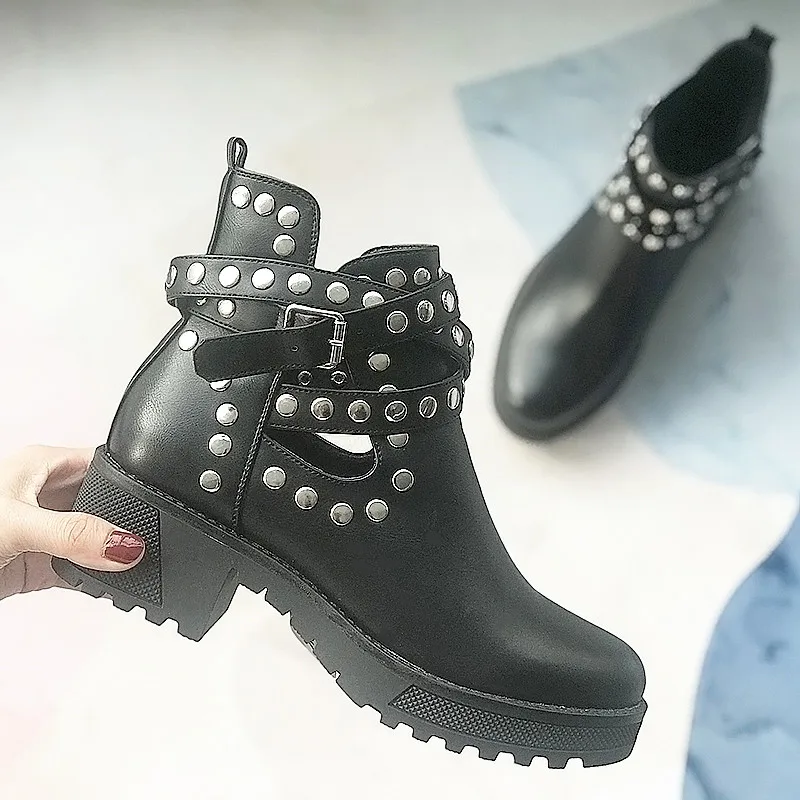 Женские мотоциклетные ботинки с заклепками, осень 2021, женские кру...