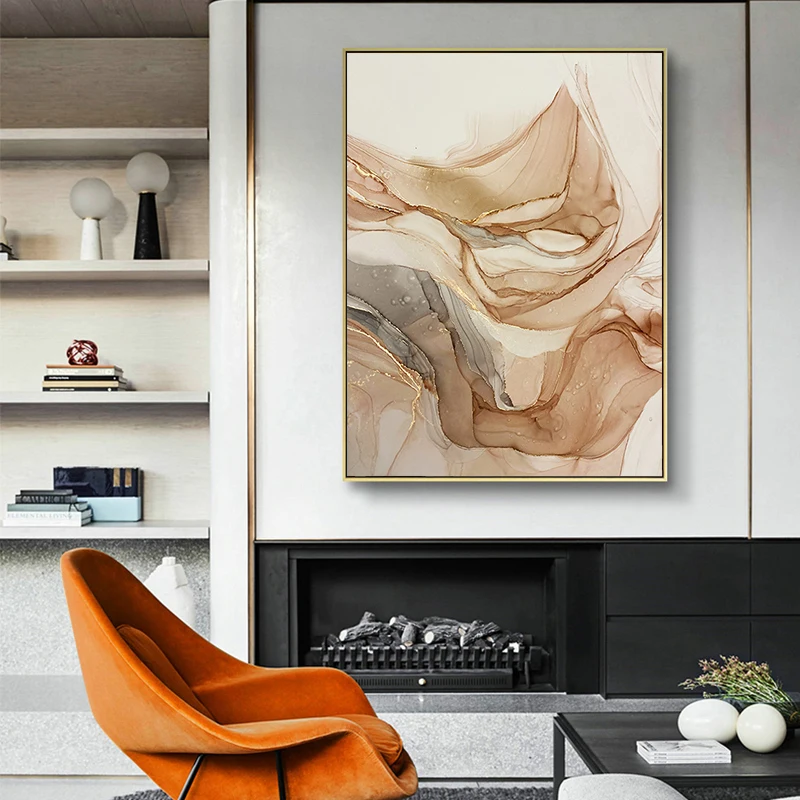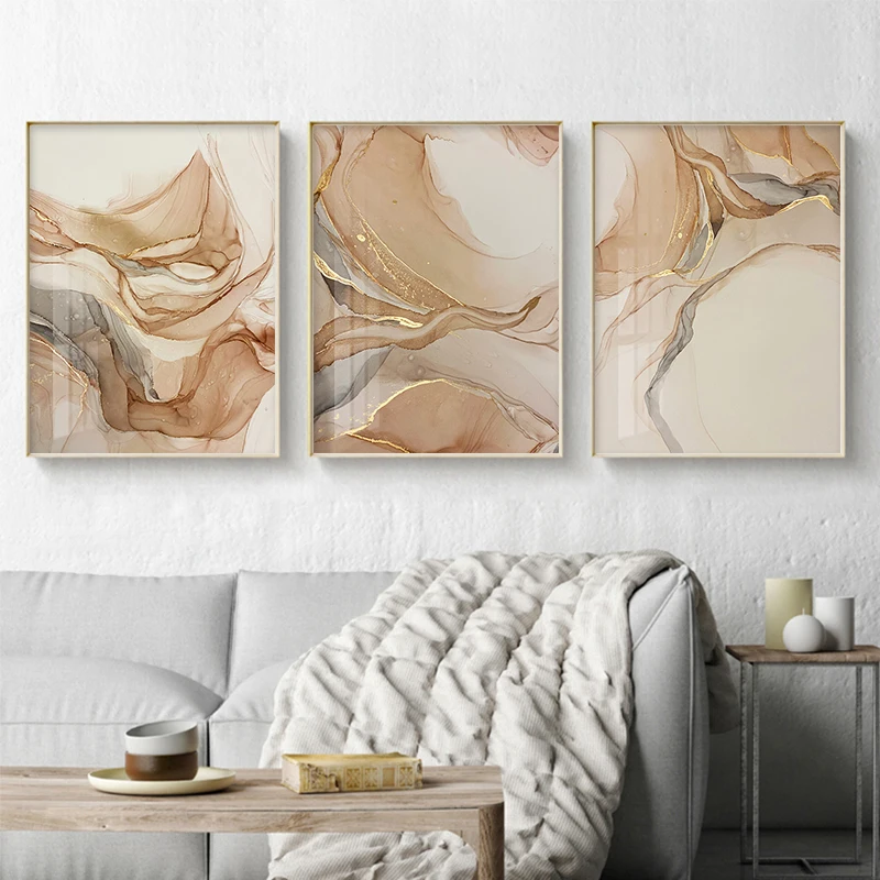 Настенный постер с абстрактным золотом, роскошная Картина на холсте с изображением бежевого мрамора, современные картины для гостиной, украшение для дома