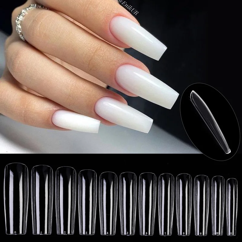 48 шт. акриловые накладные ногти Скульптурное полное покрытие прозрачный длинный гроб многоразмерный дизайн ногтей Французский накладной инструмент для маникюра