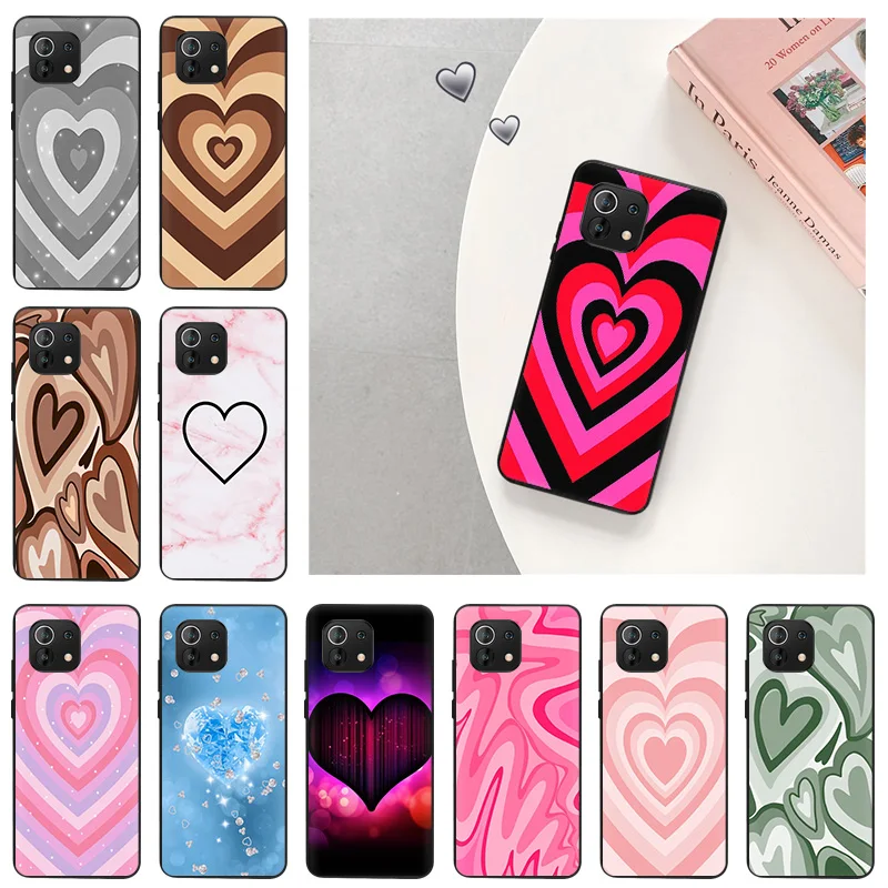 Чехол для телефона Xiaomi mi 11 Lite 11T 10T 11X 11i Note 10 Pro 5G 9 SE, цветной роскошный черный матовый Силиконовый чехол из ТПУ с сердечками