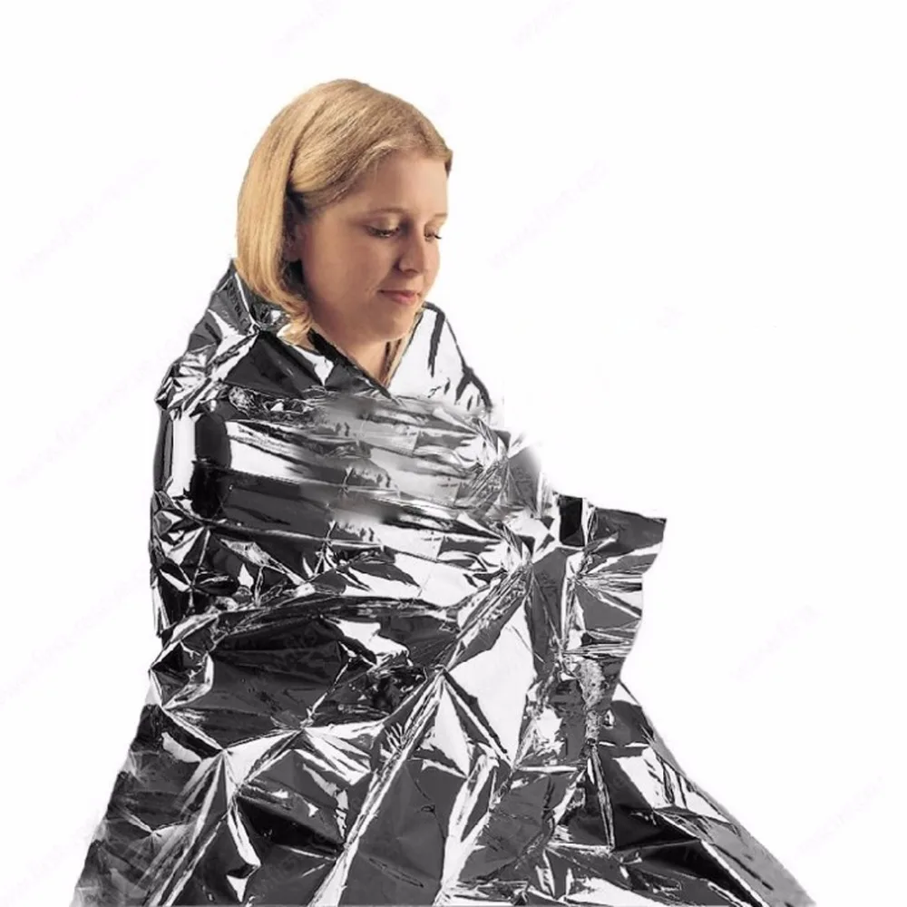 Уличное тепловое аварийное одеяло, ветрозащитное водонепроницаемое одеяло из серебристой фольги для оказания первой помощи, спасательный инструмент
