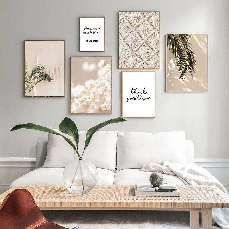 Настенная картина в стиле бохо, теплый настенный постер с изображением растений, в нордическом стиле, современная простота, для гостиной