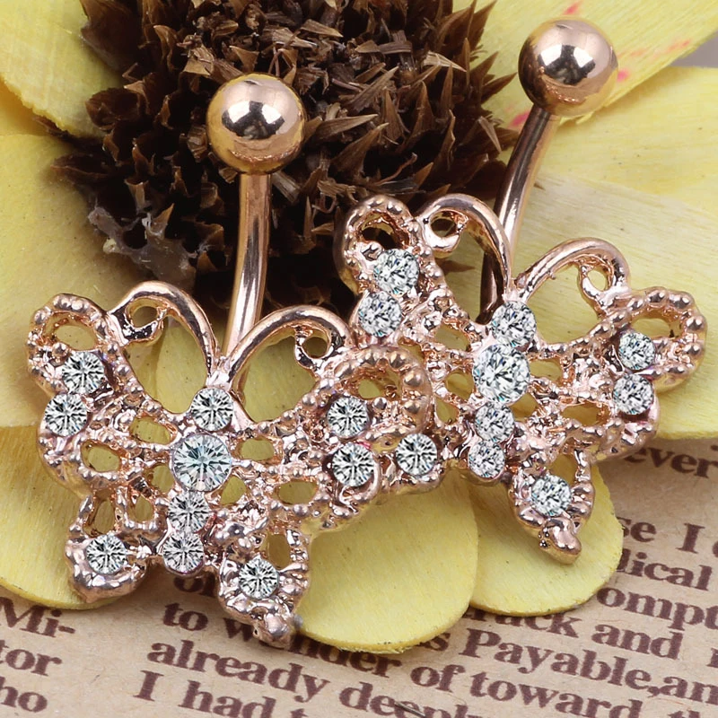 Пупок пупка кольца Бабочка паве CZ тело пирсинг свисающая штанга
