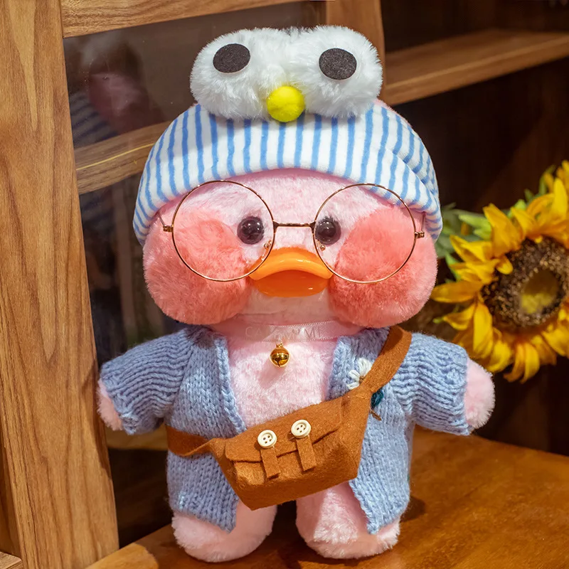 Свитер с белым сердцем, розовый, 30 см, Lalafanfan, утки, плюшевая кукла, мягкие игрушки, детская шапка, солнцезащитные очки, наряд, сумка, подарок для детей AK331