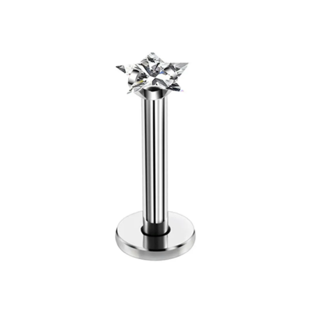 Серьга-гвоздик для пирсинга губ, ювелирное изделие из нержавеющей стали с кристаллами в форме сердца, 16 г, с цирконием, плоская звезда, для губ, губ, 1 шт.