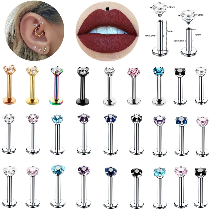 Серьга-гвоздик для пирсинга губ, ювелирное изделие из нержавеющей с...