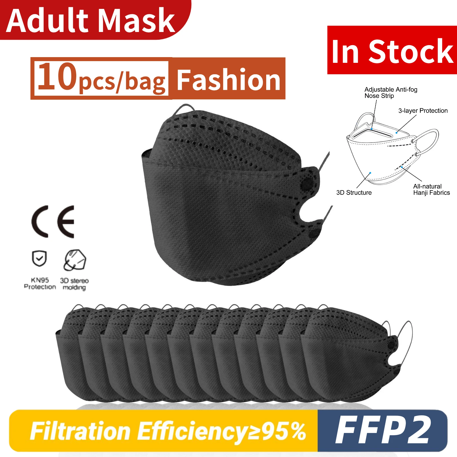 Доставка за 10 дней! 100 шт., многоразовые маски FFP2 для взрослых