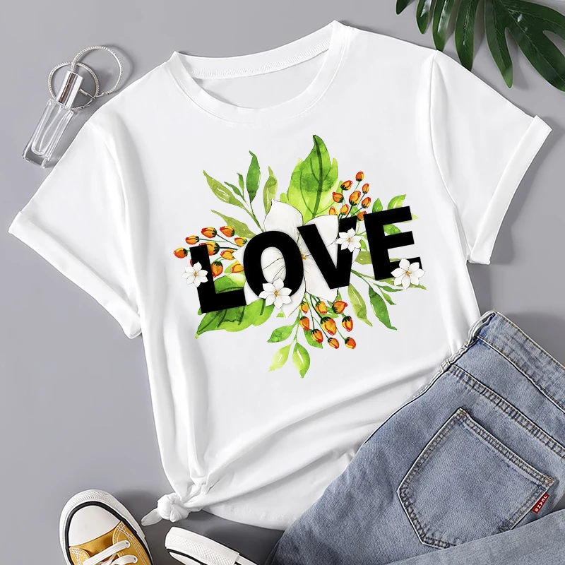 Женские футболки, футболки с мультяшным принтом растений, Повседнев...