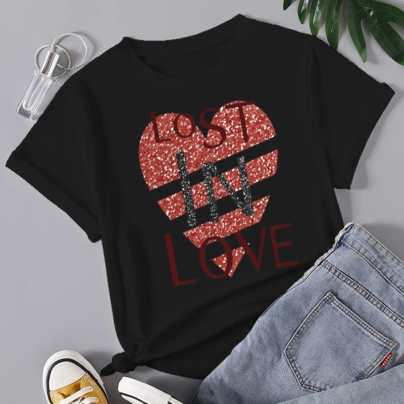 Одежда для женщин с принтом сердца, летняя простая базовая одежда с...