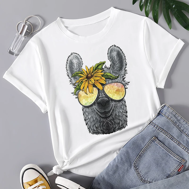 Женская футболка с коротким рукавом, Повседневная футболка с круглы...