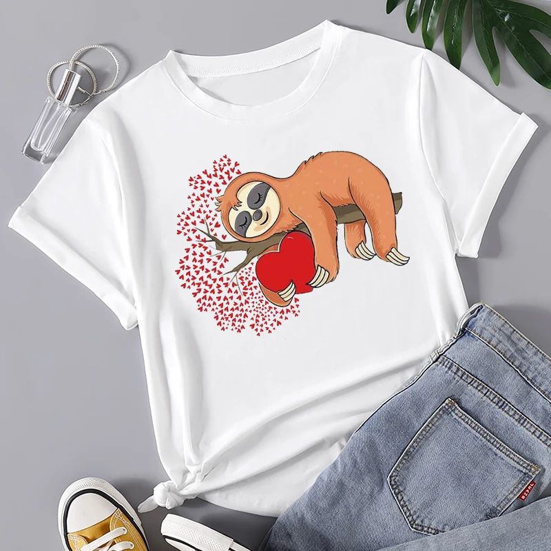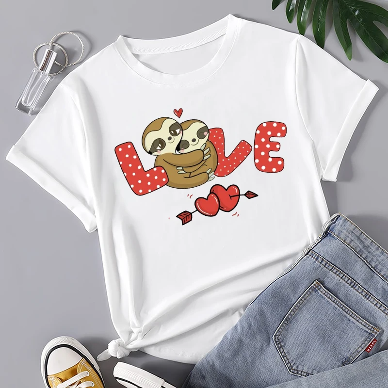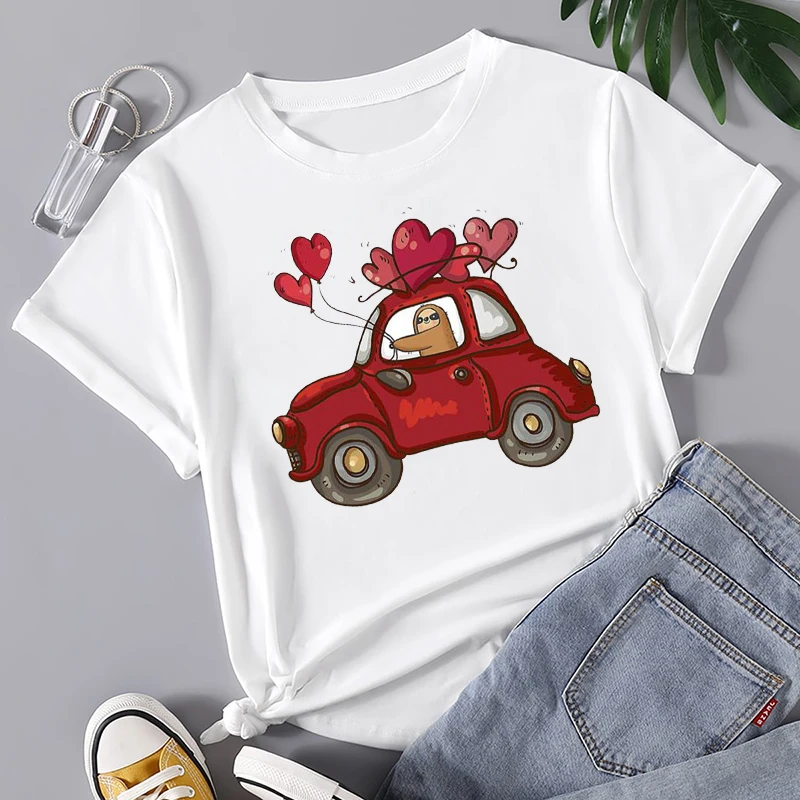 Женские Летние повседневные футболки с мультяшным принтом сердца, м...