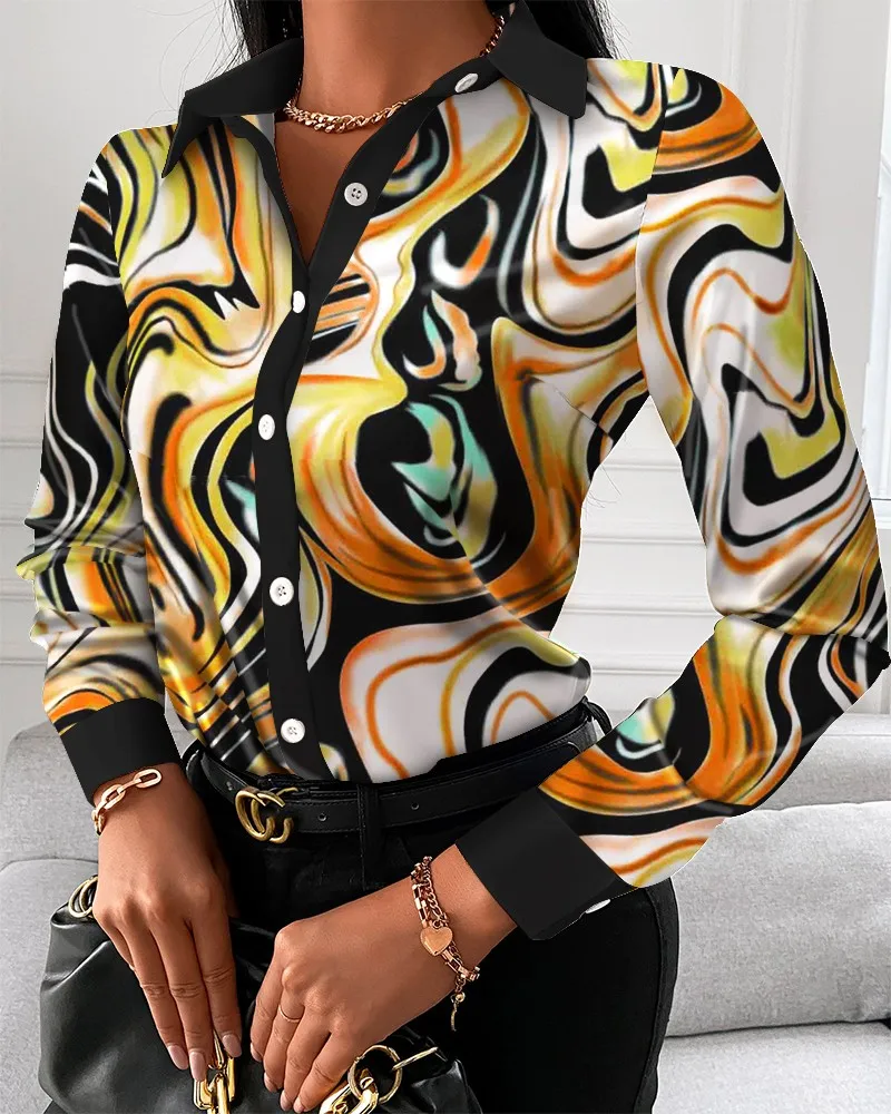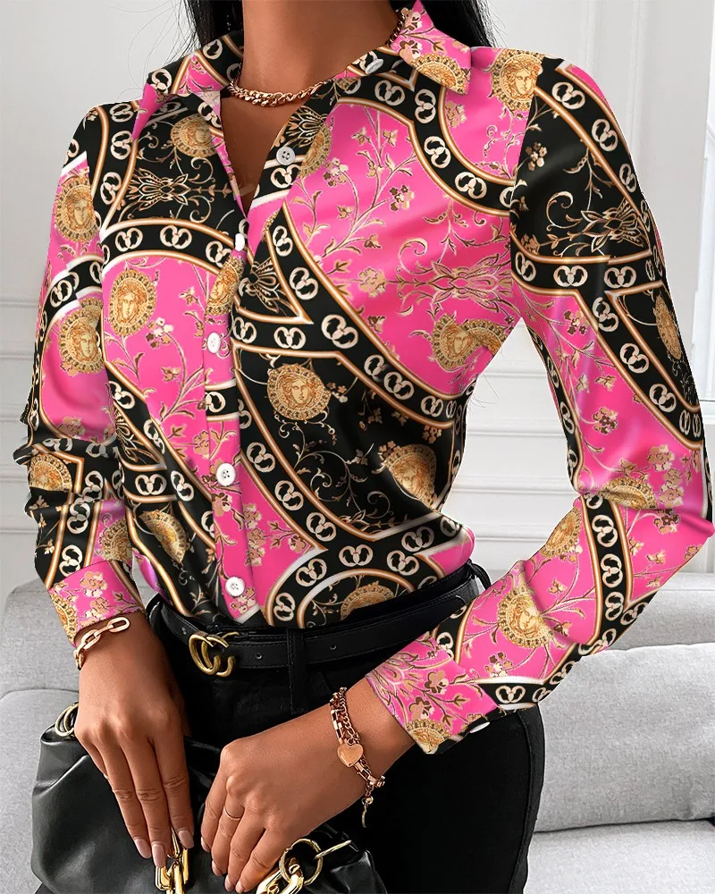Блузка на пуговицах с длинным рукавом и принтом цепей