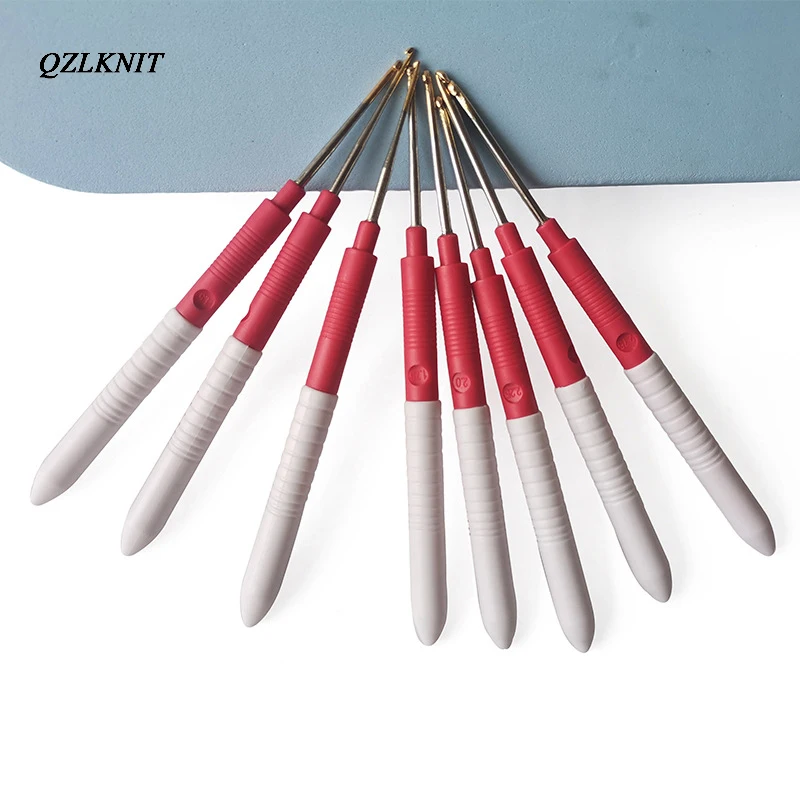 QZLKNIT 8 шт. пластиковая твердая ручка для вязания крючком тонкого размера 1,0-2,75 мм Железный крючок для вязальных спиц
