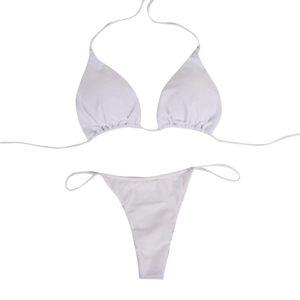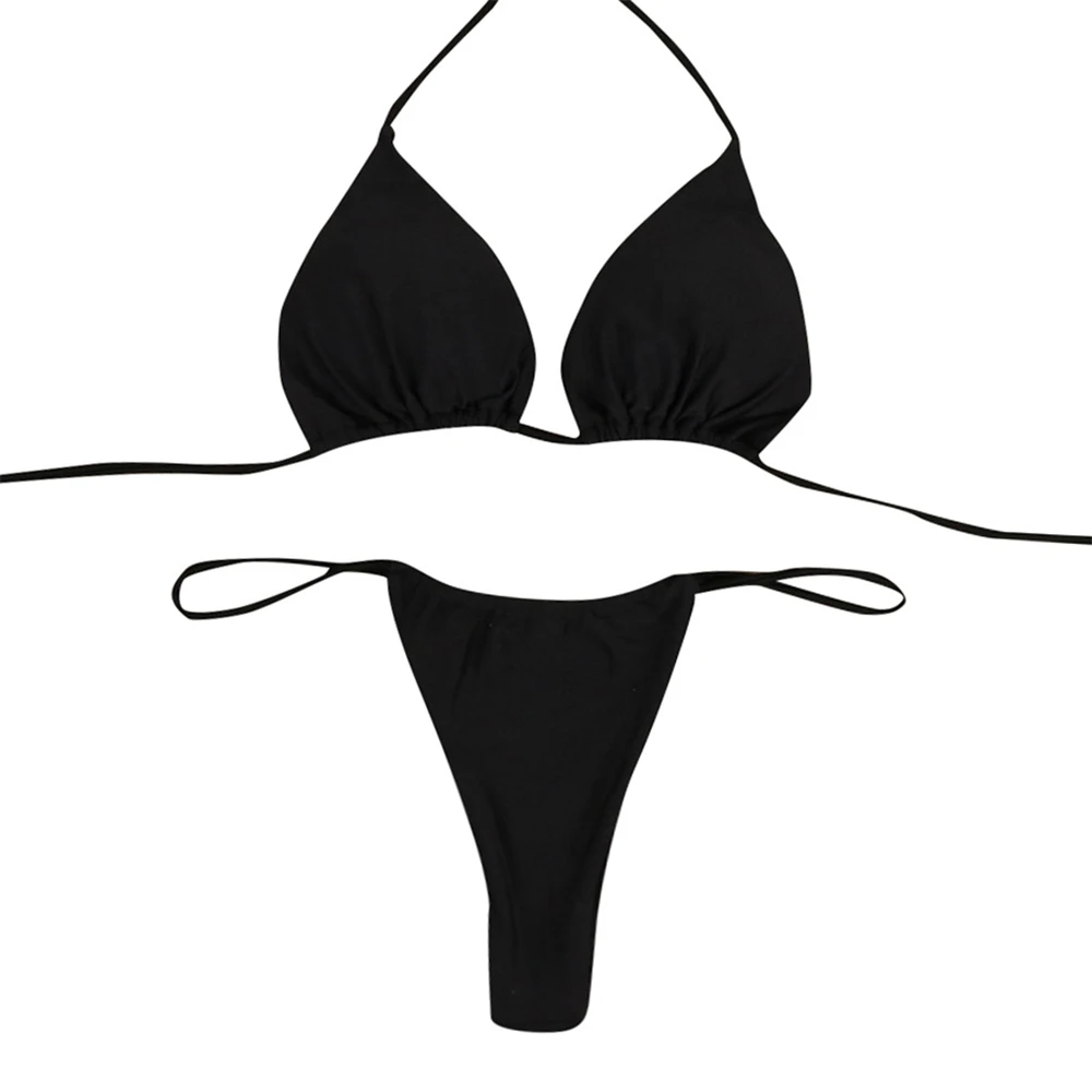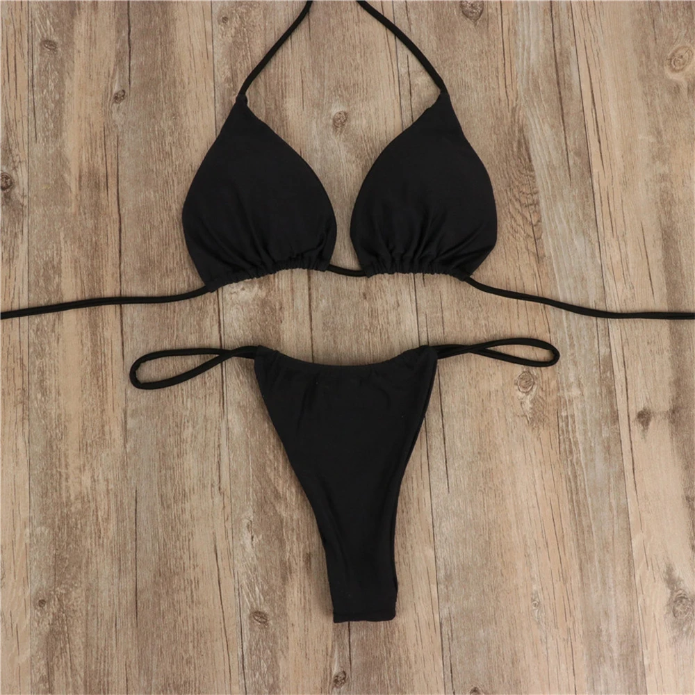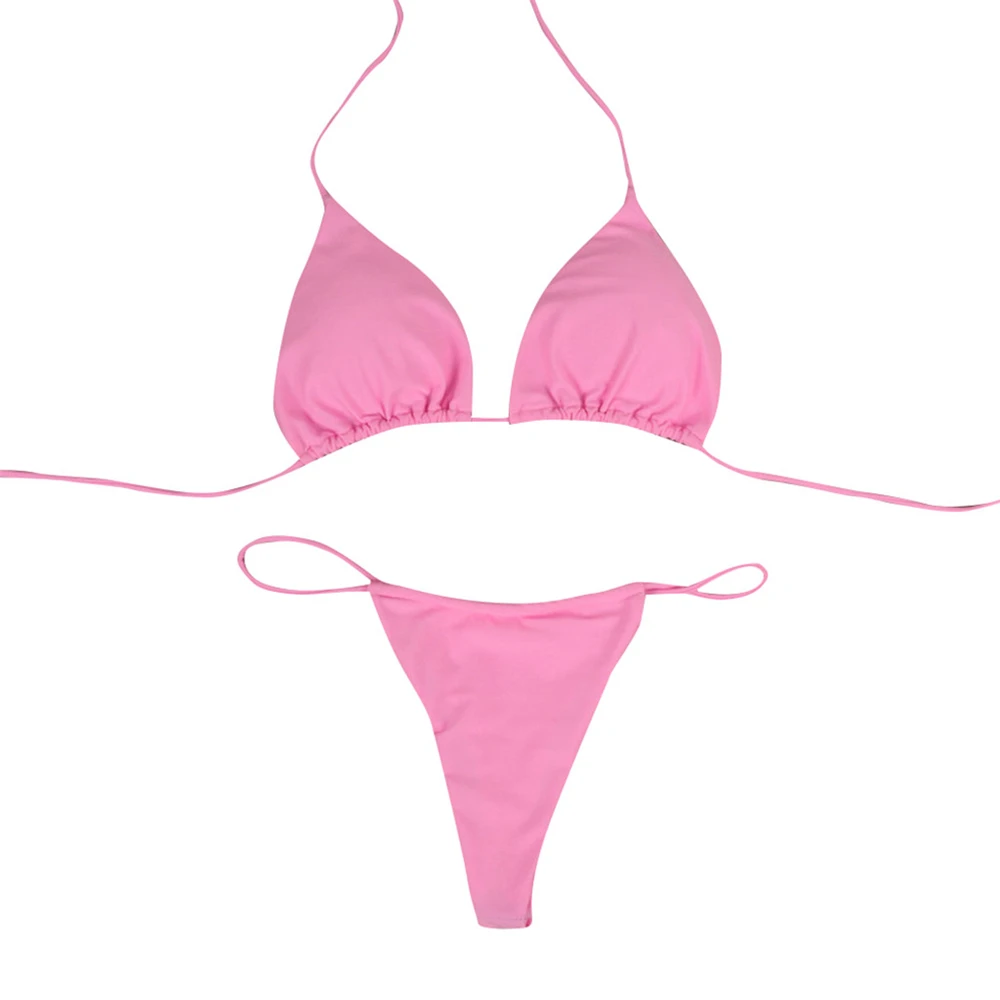 Экстремальный сексуальный трёхточечный купальник трикини пуш-ап Женские однотонные стринги микро-веревка бикини одежда для плавания бразильский пляжный купальный костюм