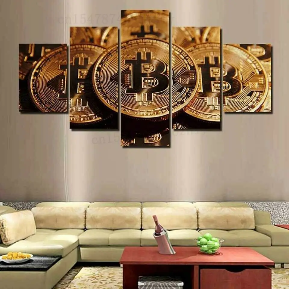 5 шт. Биткоин криптовалюты монеты холст печать стена искусство плакат печатные изображения HD 5 панель домашний декор