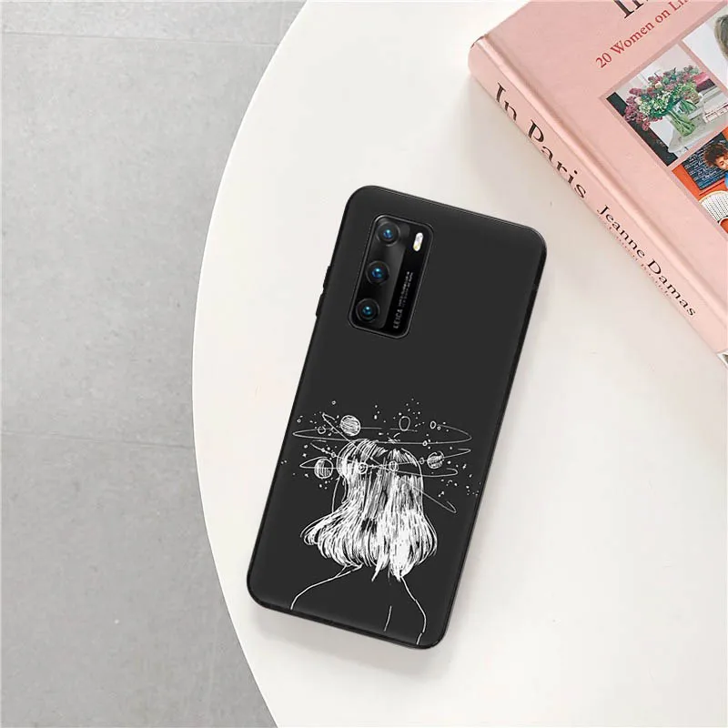 Чехол для телефона Huawei P50 P40 Lite E P30 Pro P20 P10 P-Smart Z 2021 Y6 Y7 2019 Y9, черный чехол-накладка, чехол с астронавтом, звездой, космосом