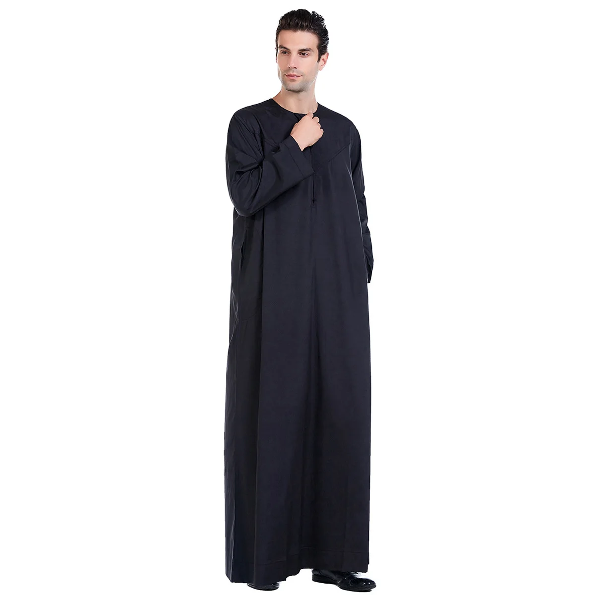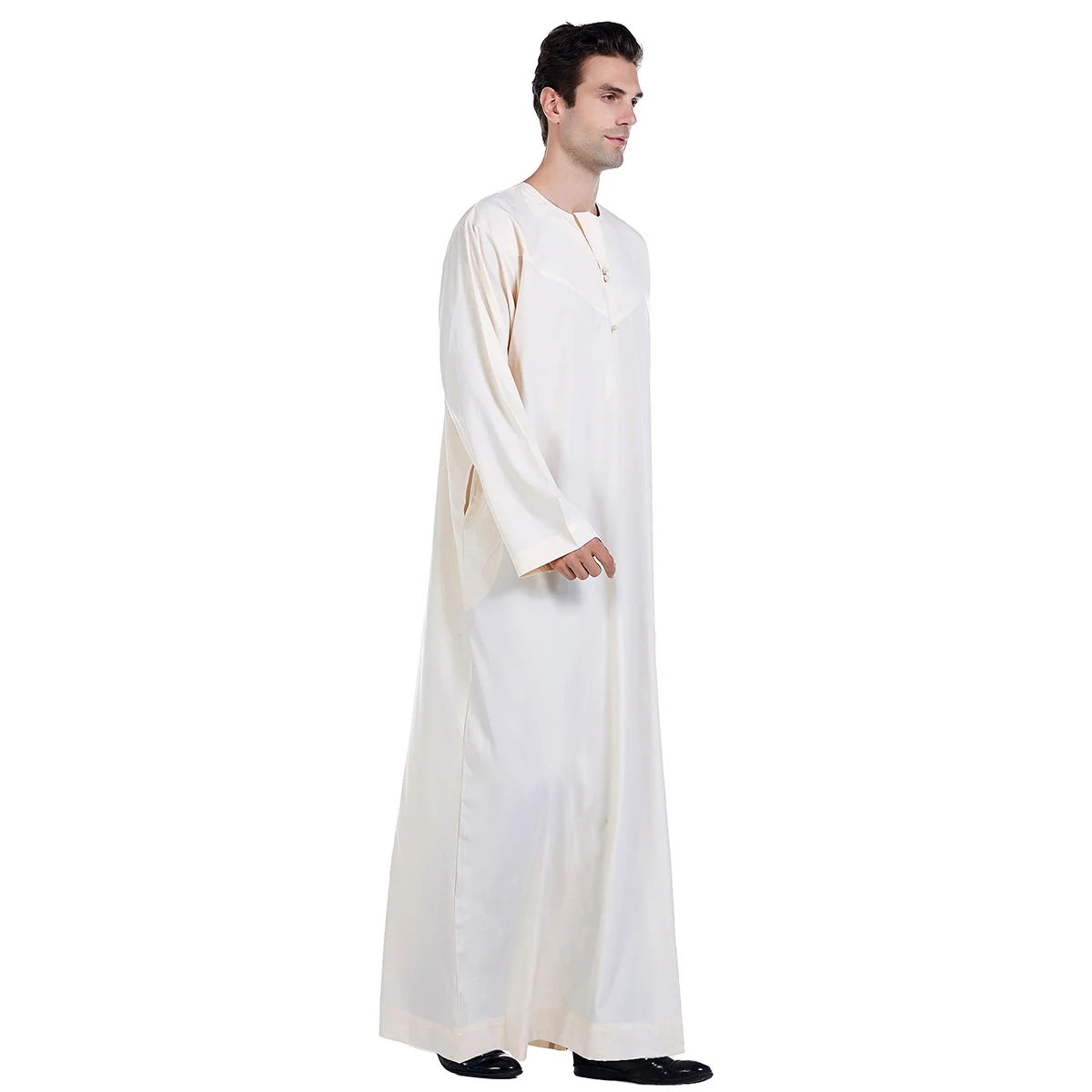 Летняя мусульманская Марокканская мусульманская с длинным рукавом, исламский мужской круглый воротник, однотонный халат, Арабский кафтан, богатство Саудовской Аравии, Abaya
